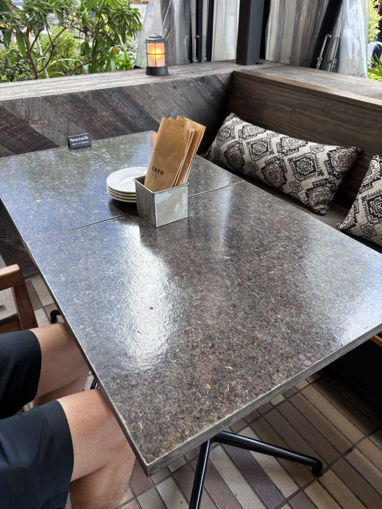 休日のランチに東京駅から徒歩圏内の「TATA -bat restaurant cafe-」に夫と子供2人の4人で行ってきました。私たちは予約なしでたまたま入れたのですが、予約必須のお店のようです。