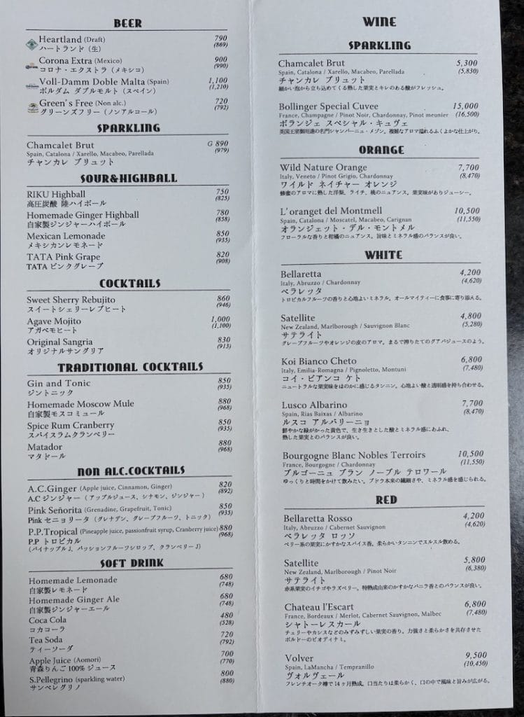 ドリンクは、ビール、スパークリング、サワー、ハイボール、カクテル、ワイン、ソフトドリンク等がありました。