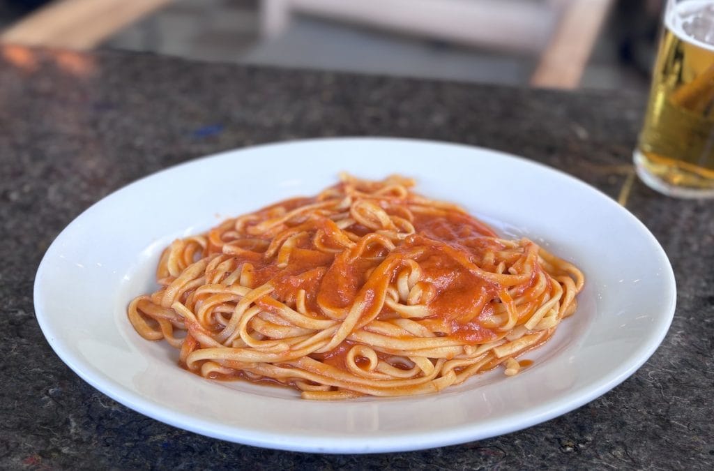 とご案内していただきました。このパスタがメニューに載っていないと思えないほどソースも生地ももちもちで美味しくて、子供も夢中で食べていました。